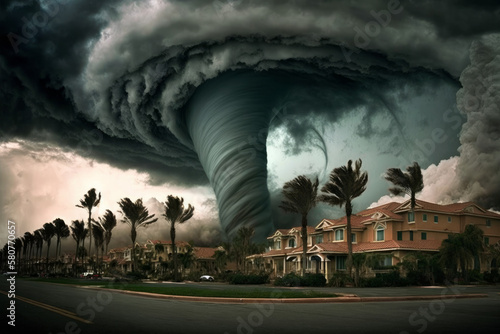 © ink drop, Fototapeta premium A tropical storm, tornado or hurricane. Generative ai