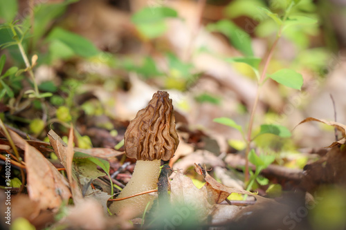 © Barbora Batokova, Fototapeta premium A true morel (Morchella) growing in the woods