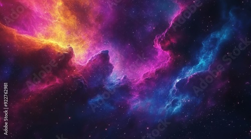 Fototapeta premium A truly breathtaking view showcasing a colorful cosmic nebula with vivid,...