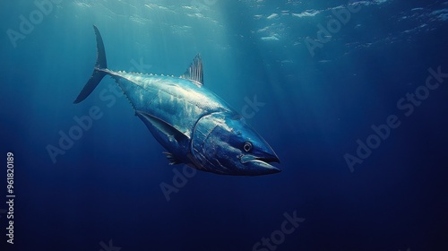 © Alienmarsh, Fototapeta premium A Tuna Swimming Through the Deep Blue Sea