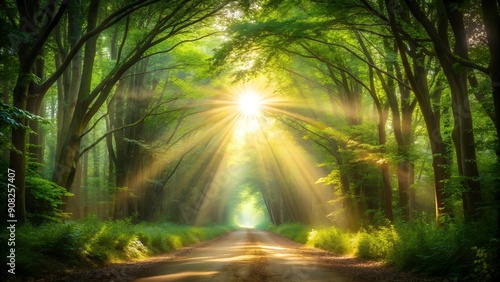 © boxcs, Obraz premium A Tunnel of Light Through a Forest Canopy generative AI