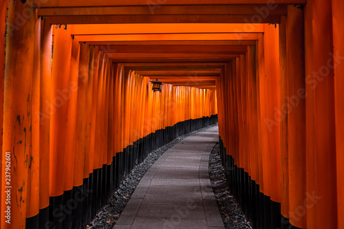 © Puripat, Fototapeta premium A tunnel of torii gates at Fushimi Inari Shrine,An important Shinto shrine in southern Kyoto, Japan