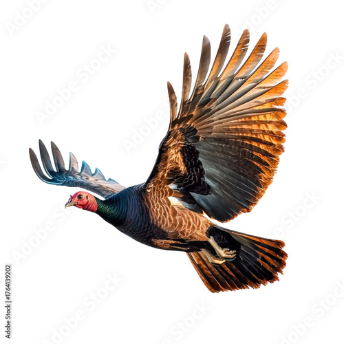 © Von, Fototapeta premium A turkey vulture in flight with its wings spread wide.