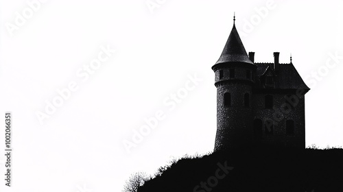 © ckybe, Obraz premium A turret silhouette mockup against a clean white backdrop, ideal for displaying architectural concepts or imaginative poster designs with ample space for text.