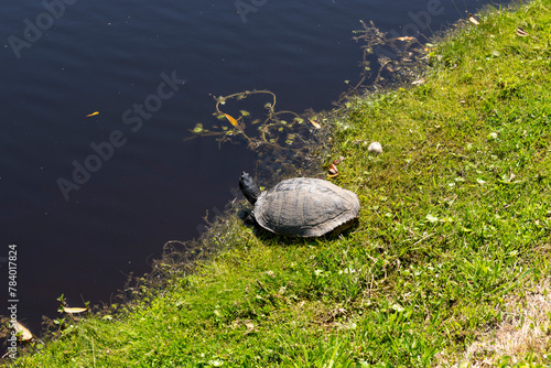 Fototapeta premium A turtle basking in the midday sun at Middleton Place plantation in South Carolina.