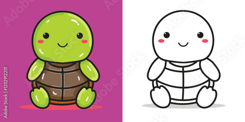 Obraz premium A Turtle Cartoon Illustration for Design Element or Coloring book Element