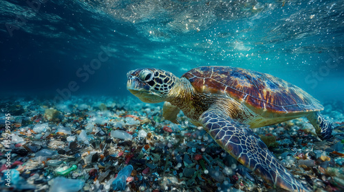 Fototapeta premium A turtle is swimming in the ocean