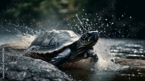 Fototapeta premium A turtle runs through the water - created by generative AI
