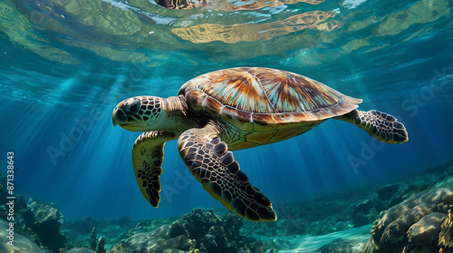 Fototapeta premium A turtle swimming in the ocean
