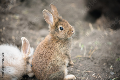 © Natali, Fototapeta premium A two rabbits in the zoo close up.