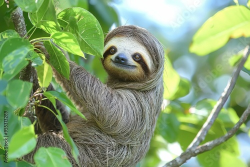 © talkative.studio, Fototapeta premium A Two-Toed Sloth Clinging to a Tree Branch