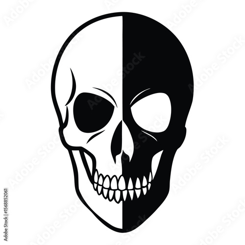 © Golam, Fototapeta premium A twotoned skull showcases half in black and half in white tone