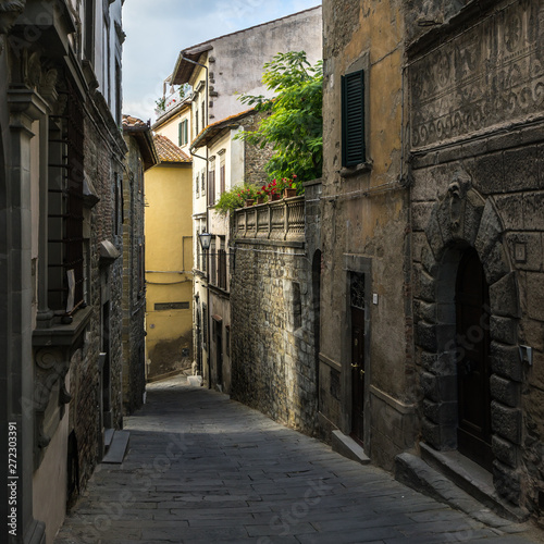 Fototapeta premium A typical narrow street in Cortona historic center. Cortona is a beautiful...