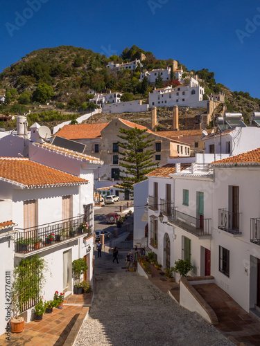 Obraz premium A typical street in the hillside village of Frigiliana in Andalusia Spain