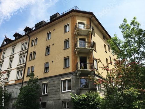 Naklejka premium A typical urban residential area on the outskirts of the city with green areas and parks - St. Gallen, Switzerland (Schweiz)