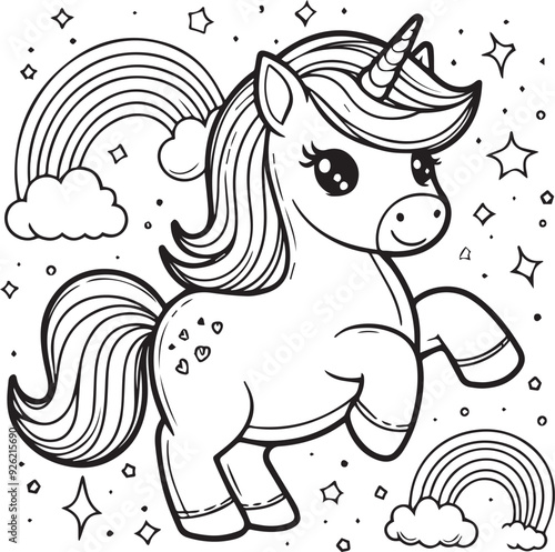 © Creative_Hamza, Fototapeta premium A unicorn horse line art coloring book illustration for kids