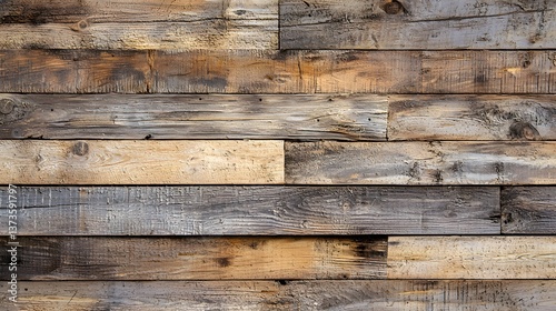 © Kamonrat, Obraz premium 5. A uniform tile pattern of light pine wood planks, creating a warm and inviting wooden texture.