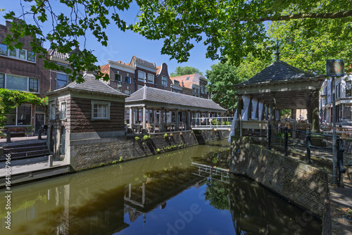 Fototapeta premium A unique canal view "Visbank" featuring charming waterside structures with...