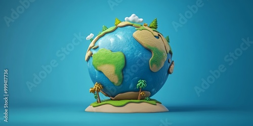 © Going Place, Naklejka premium A unique 3D icon of Earth featuring exaggerated features and cartoon elements, designed to engage children in learning about geography