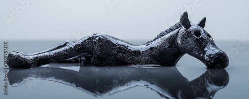 Obraz premium A unique sculpture of a horse resting on a reflective surface.
