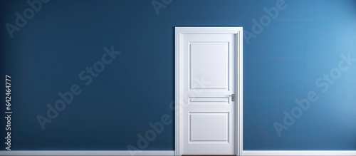Naklejka premium a vacant room with a dark blue wall and an open white door