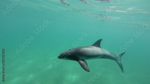 Naklejka premium A vaquita swims gracefully in the turquoise waters of the Gulf of California,...