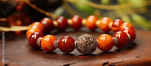 Naklejka premium A varied assortment of handmade jewelry featuring pink quartz, carnelian...