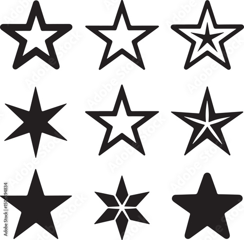 Obraz premium a variety of black-and-white star silhouettes representing different styles...