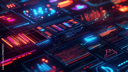 © sa-photo, Obraz premium A variety of business icons on a digital dashboard, highlighting data analytics and productivity.