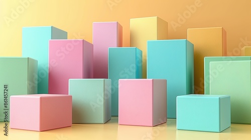 © easybanana, Obraz premium a variety of 3D geometric shapes, including cubes, arranged in a staggered pattern.