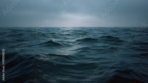 Obraz premium A vast dark ocean under a moody cloudy sky with powerful rough waves reaching...