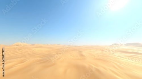 Naklejka premium A vast desert landscape under a clear blue sky, showcasing undulating sand...