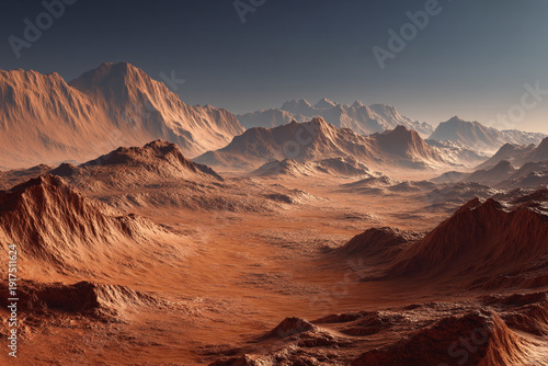 © Sajib, Naklejka premium A vast desert landscape with rugged mountains under a clear blue sky