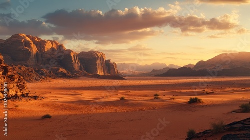 Naklejka premium A vast desert landscape with towering mountains