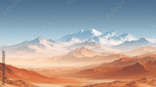 Naklejka premium A vast desert scene showcases towering snow capped mountains in the...
