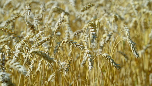 Naklejka premium A vast expanse of golden wheat field shimmering under the warm and bright sunlight