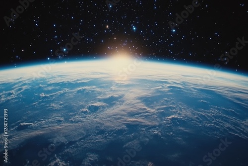 Obraz premium A vast expanse of space with distant stars and galaxies, with Earth in the...