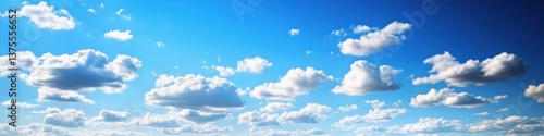 © Sarawut, Naklejka premium A vast, expansive plain with a blue sky and fluffy clouds, with clear space for adding slogans or messages.