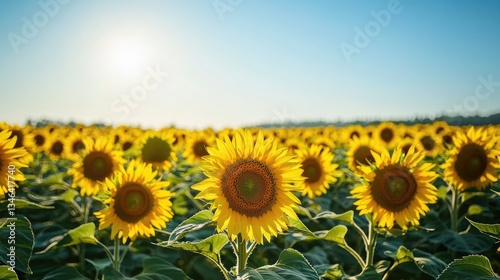 Fototapeta premium A vast field of radiant yellow sunflowers under a clear blue sky