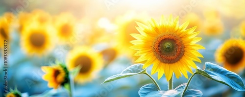 Fototapeta premium A vast field of sunflowers under the brightest sunlight, every petal...