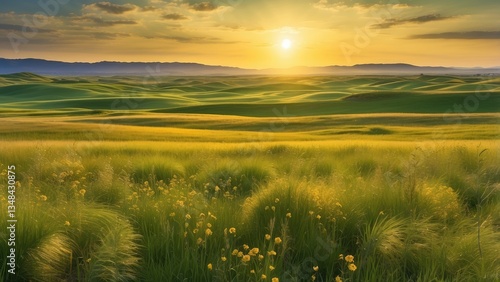 © Masud, Obraz premium A vast field of tall grass at sunset.
