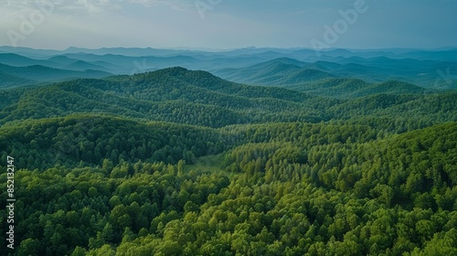 © Diffin, Fototapeta premium A vast green forest viewed from above, with layers of trees stretching into the distance