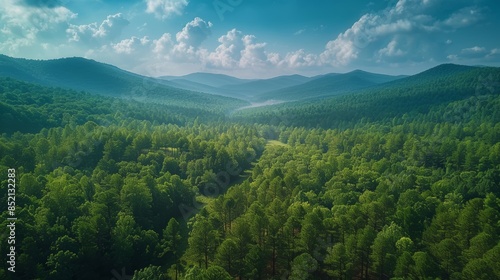 © DSimage, Fototapeta premium A vast green forest viewed from above, with layers of trees stretching into the distance
