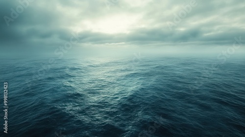 © Rere_Art151, Obraz premium A Vast, Grey-Skied Ocean Under a Hazy Sky