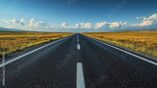 Naklejka premium A vast highway extends endlessly towards the horizon, framed by picturesque...