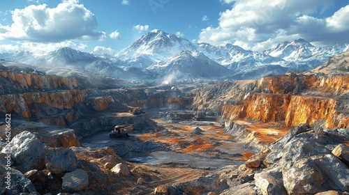© Parsudi, Obraz premium A vast mining landscape with mountains and rocky terrain.