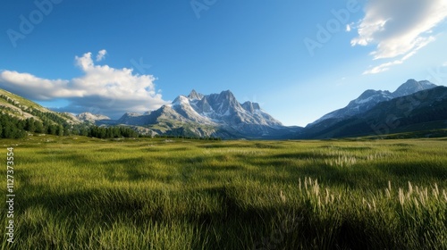 © Babb, Fototapeta premium A vast, open field with mountains in the background