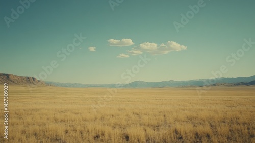 Fototapeta premium A vast open grassland under a beautiful clear blue sky