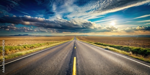 Naklejka premium A vast road stretches into the distance with three parallel pathways...