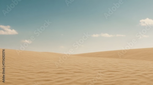 Naklejka premium A vast, tranquil desert landscape featuring gentle sand dunes under a clear...